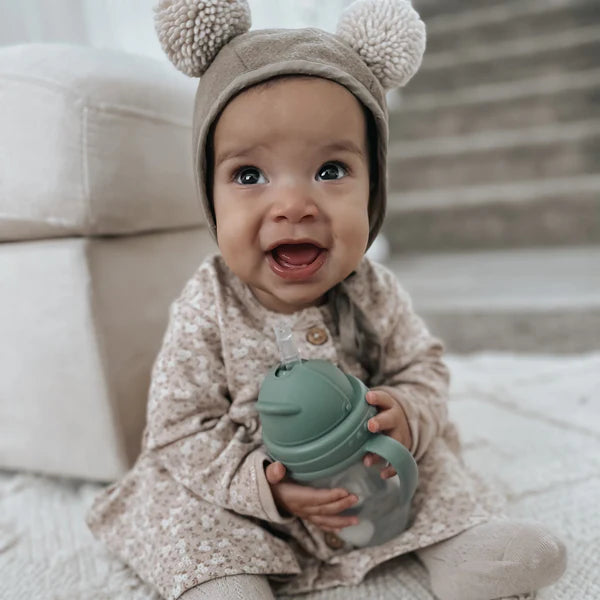Introducing the Noüka Non-Spill Weighted Straw Cup. This innovative weighted straw cup is designed with a weighted ball so the straw always moves towards the liquid, regardless of the cup's orientation. This cup features a flexible straw, equipped with a weighted ball, providing a seamless sipping experience for both babies and toddlers. The silicone leakproof straw tip prevents spills, while the weighted straw ensures liquids are accessible from any angle, even when the cup is upside down.