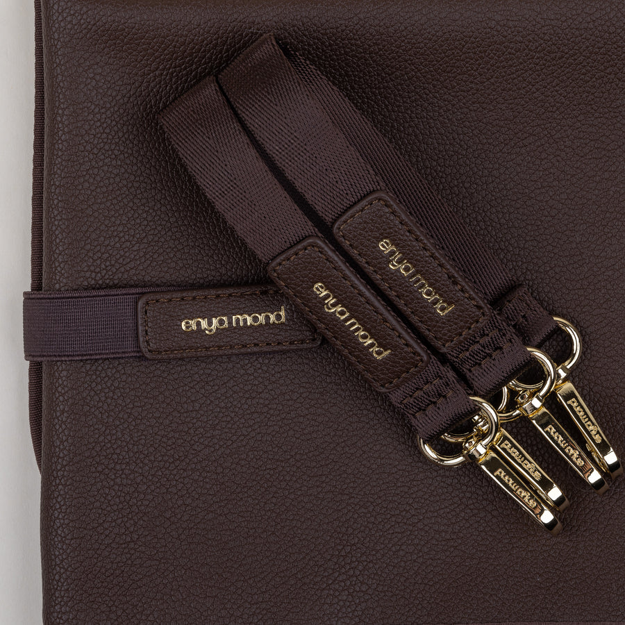 Discover the ultimate blend of elegance and function with Luna. Crafted from top-grade premium vegan leather in a rich pebble finish, Enya Mond Luna Diaper Bag Backpack exudes sophistication. Every detail speaks quality - from the high-grade zippers to the light gold custom-logo hardware. And for those inevitable spills and messes? The water-resistant lining has got you covered.