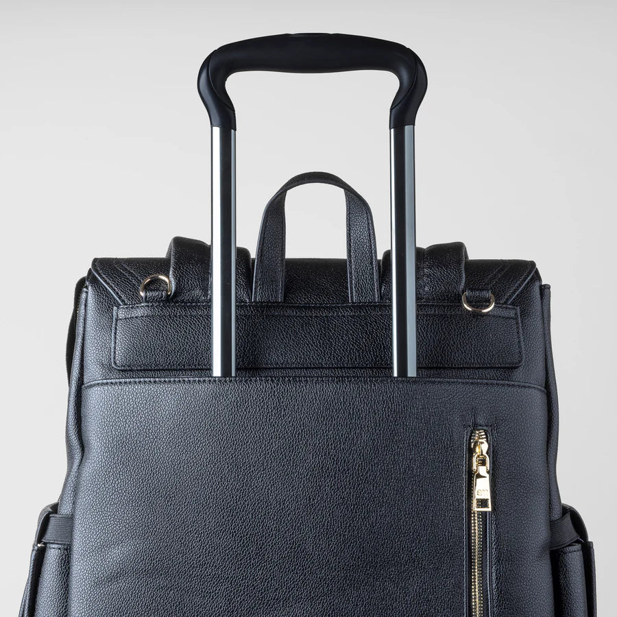 Straying from traditional, taller mom backpacks, Luna offers a wider design. This innovative layout ensures easy access and superior organization. The bag's frame maintains its upright stance when placed down, and metal feet ensure cleanliness wherever you go. The wide zipper opens fully, allowing a clear view and access to all compartments.