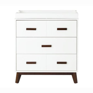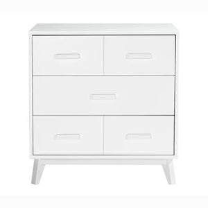The Babyletto Scoot 3-Drawer Changer Dresser is mid-century modern style defined. The perfect accompaniment to your Scoot crib, the Scoot 3-Drawer Changer Dresser highlights matching tapered feet and two-toned detailing. This sturdy unit provides a range of practical storage possibilities to suit all of mom's needs.