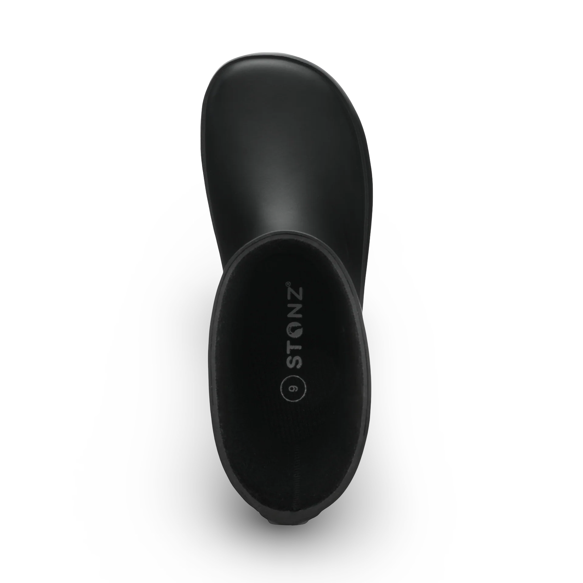 The Stonz Waterproof Kids Rain Boots are designed with zero-drop, easy-on features, and non-toxic materials, perfect for wet and muddy conditions.