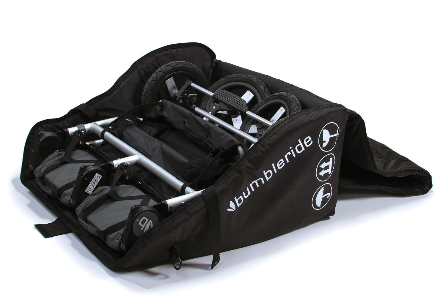 An essential part of family traveling with multiples includes bringing your stroller, this double stroller travel bag will ensure Indie Twin’s safe and clean arrival to your destination. The Indie Twin Travel Bag features a tough weather-resistant exterior, reinforced carry handles, shoulder strap and padded interior. There’s no need to remove wheels thanks to dual-zippered sides and a large centre opening, making packing up or unloading quick and easy. An inner security belt, 3 exposed luggage wheels and a footed base make for quick maneuvering through tight spaces or upright stow.