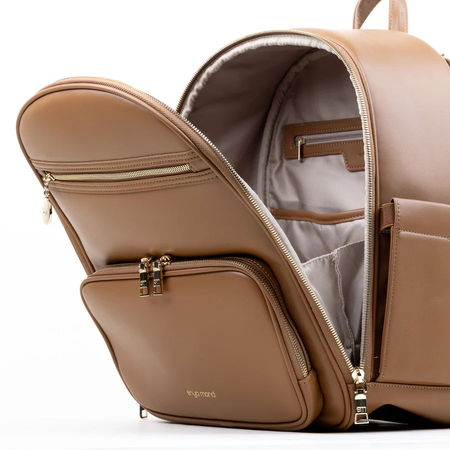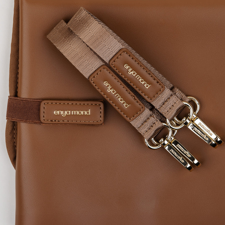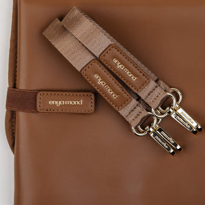 Constructed from the finest smooth vegan leather, Elara shines with a sleek allure. The impeccable design is evident in every facet of the bag - from the durable zippers to the gleaming custom-logo hardware in light gold. And when life throws those little unexpected mishaps your way? Rest assured, the water-resistant lining is there to handle it with grace.