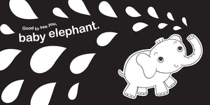 Using simple greetings like "Hello, baby bunny" and "What's going on, zebra?" alongside lovely black-and-white art by Julissa Mora, Hello, Baby Animals is the perfect board book for babies just beginning to look around and learn about the world.