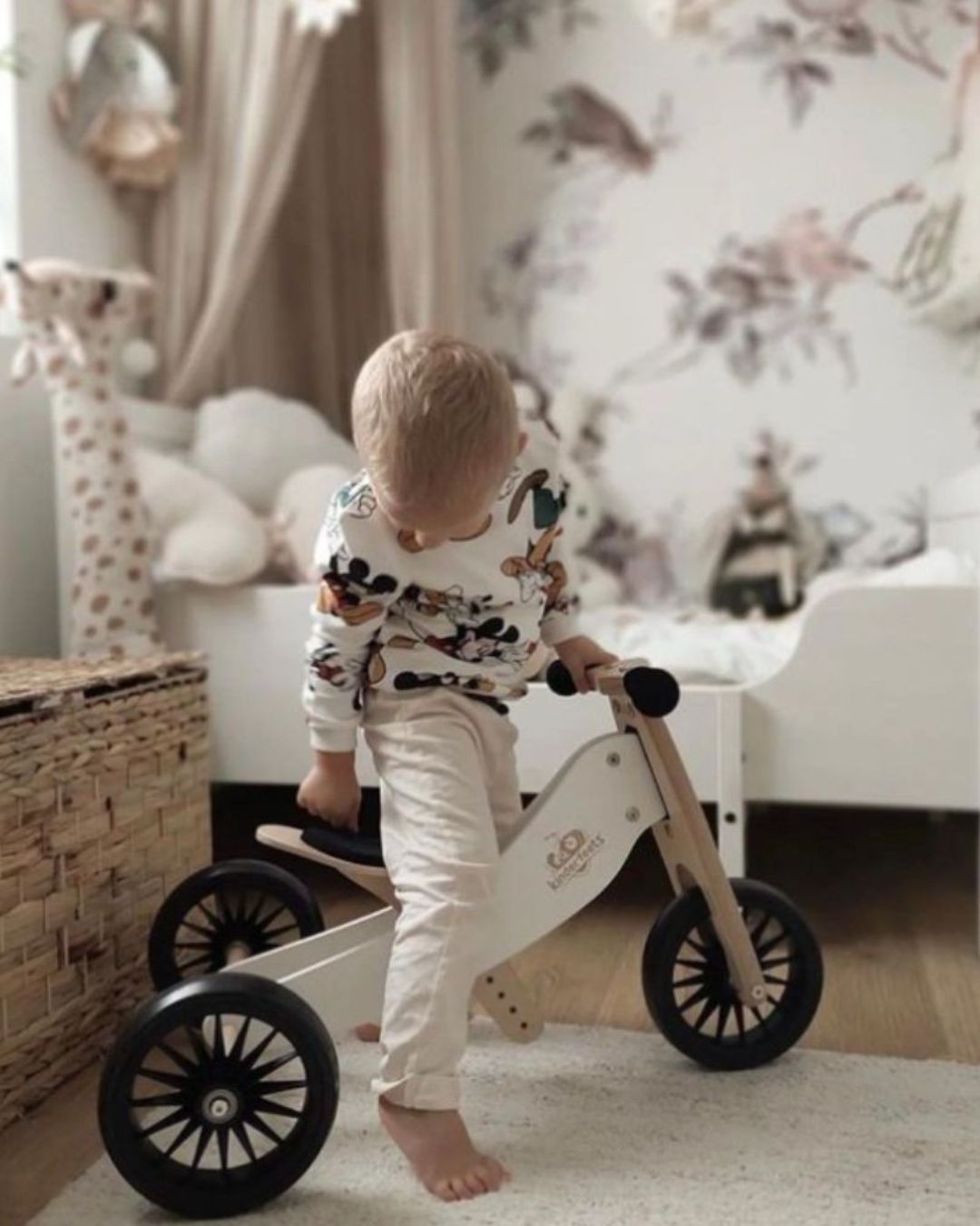 The patented Kinderfeets Tiny Tot 2-in-1 Tricycle/Balance Bike easily converts from a tricycle to a 2-wheel balance bike! Designed for "tiny tots" ages 12 to 24 months, Kinderfeets Tiny Tot starts off as a tricycle and when needed it easily converts into a 2-wheel balance bike. It's the smallest 2-in-1 balance bike on the market and a truly multi-purpose product that will last for years!