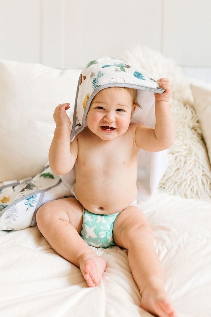 The Loulou Lollipop Hooded Towel and Washcloth Set includes 1 hooded towel and 1 washcloth. This hooded towel is a bath time or swimming time essential! It features pockets for your little one's head and for little hands to keep them warm. It's also made from super-soft deluxe muslin lined with a buttery soft bamboo/cotton blend terry cloth that's extremely absorbent. These materials are gentle on your little one's delicate skin.