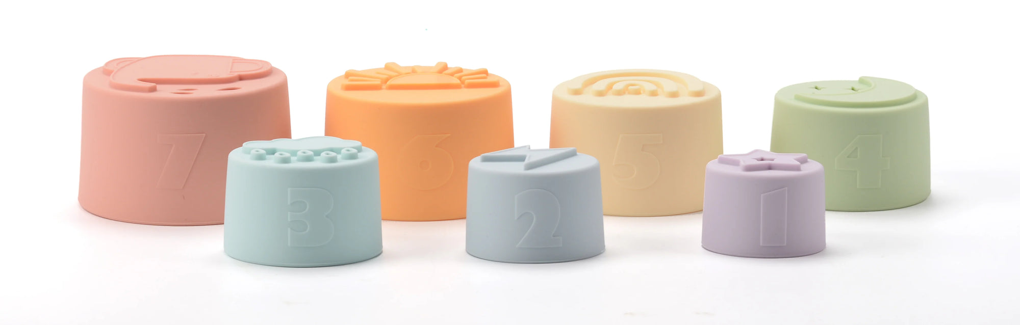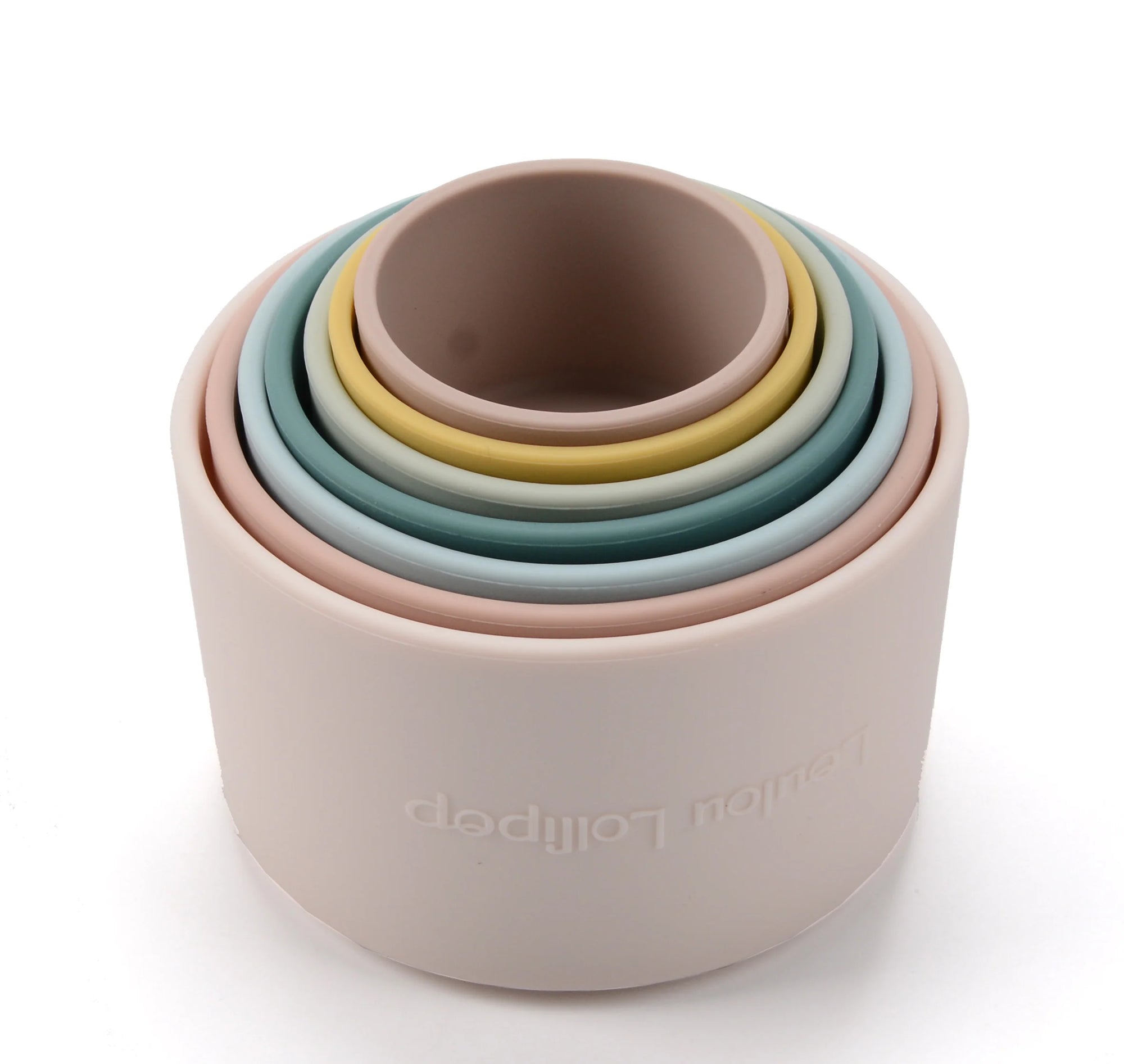 The Loulou Lollipop Stacking Cups are silicone nesting and stacking cups and are a must-have sensory and educational toy for all ages. Adorned with a fun design on each cup, this set of seven cups is made of 100% food-grade silicone that is soft and gentle, essential from playtime or bath time too! Designed for ages ten months and up.