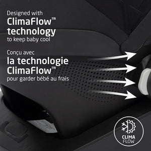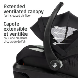 Your baby’s safety and comfort come first. The ClimaFlow™ technology shell provides added ventilation to keep your baby cooler. Side impact protection and plush padding on the removable infant head and lumbar inserts ensures a secure fit and cozy ride. Plus, energy absorbing EPP environmentally-friendly foam in the headrest area to effectively manage impact energy. The extendable ventilated canopy provides maximum shade and airflow. Enjoy added style and comfort with the vegan leather-trimmed ergonomic carrying handle contoured to curve around your hip.