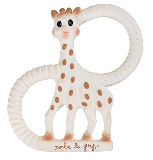 Just like the original Sophie the Giraffe Teether, the Sophie the Giraffe So'Pure Natural Rubber Teething Ring from Vulli is made with all-natural rubber from the Hevea Tree. This super-soft teether with multiple textures and easy-grasp places is visually-stimulating with its high-contrast spots. This beautiful product will help ease the pain associated with sore gums during teething, and help those precious little teeth to pop through. The all-natural Sophie So Pure Teething Ring is also BPA- and phthalate-free.