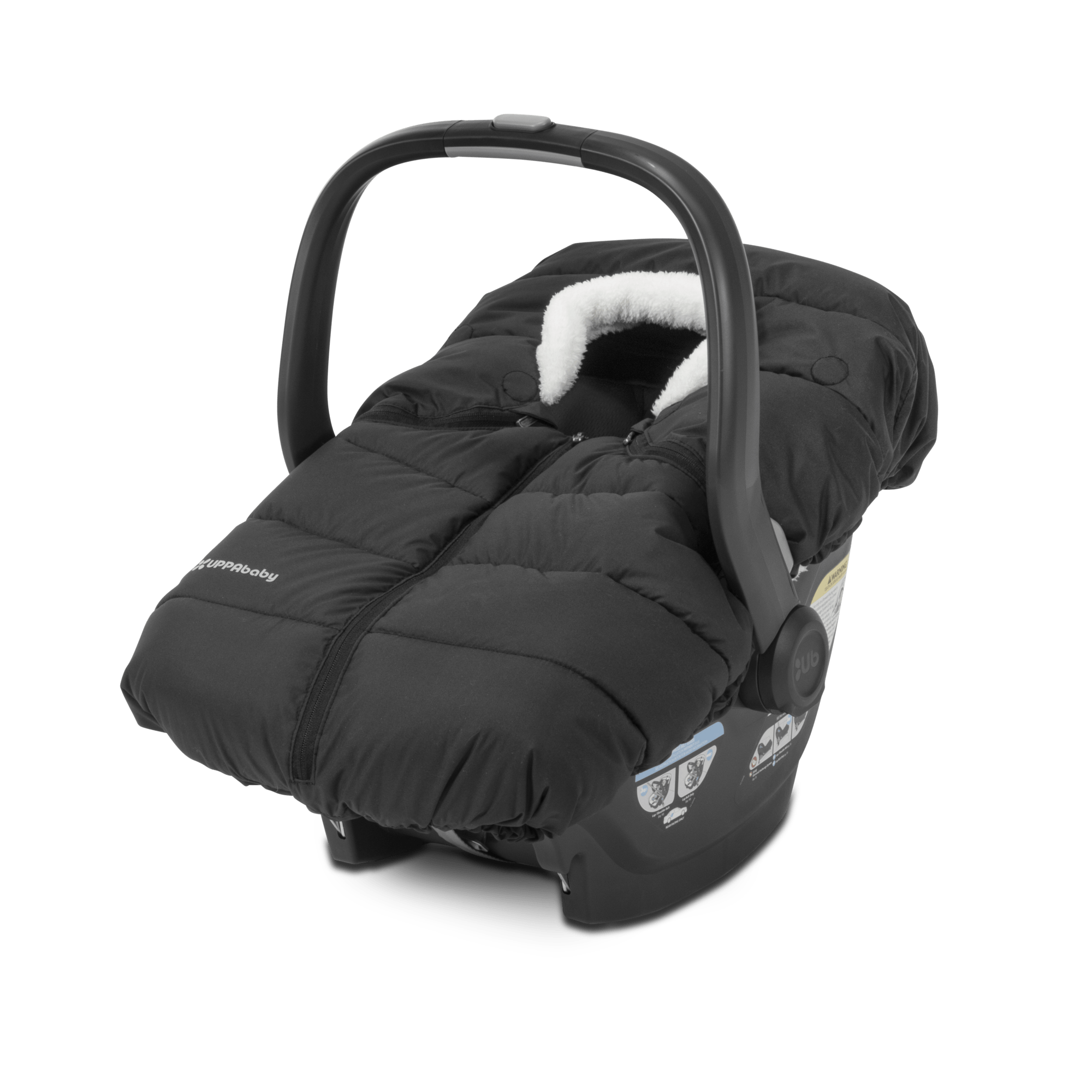 The UPPAbaby Mesa CozyGanoosh for the Mesa or Aria carrier provides ultimate coverage and warmth when strolling or transporting child outdoors in inclement weather. This product is intended for strolling and transporting a child outdoors only. The CozyGanoosh must be removed from the Mesa or Aria carrier while riding in a vehicle.